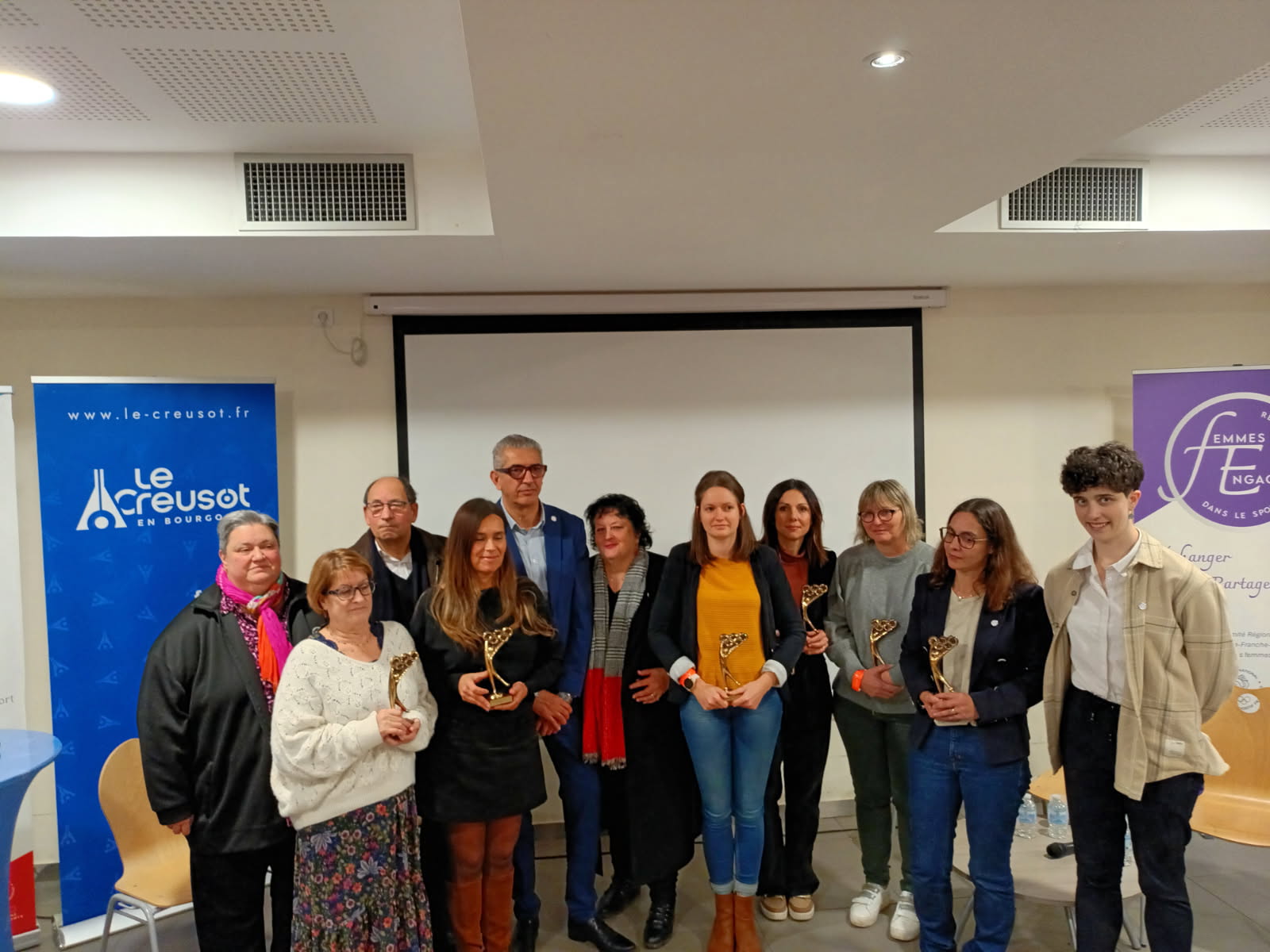 Durant la soirée, six femmes ont reçu un trophée pour souligner leur engagement dans le bénévolat. Une exposition retraçant leur parcours avait été installée pour les mettre à l’honneur. Parmi elles, on peut citer Carmen Martinelli, présidente de la Croix-Rouge française au Creusot. Entrée à la Croix-Rouge en 2015 pour être secouriste, elle devient présidente de l’association en 2017. Elle s’est engagée sans faille aux côtés de la Ville durant la crise sanitaire en étant présente tous les jours au centre de vaccination de l’Alto.