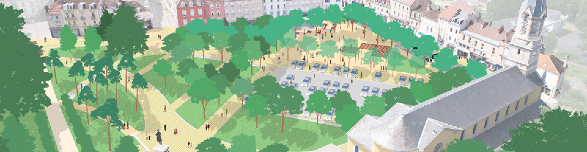 Le but : transformer cet espace central en une place confortable, un espace public fédérateur, dans une démarche écologique vertueuse.